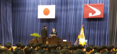 生徒会役員任命式 2025.07.18生徒会役員任命式が行われ、生徒会長をはじめとする新たな役員が任命されました。 新生徒会長の森川君より代表の挨拶がありました。 |