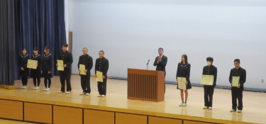 賞状伝達式 2025.12.192学期中に行われた多くの全国大会(運動部・文化部・ロボット競技大会、他)の賞状伝達式が行われました。 |