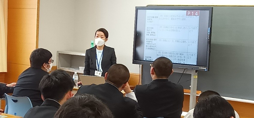 就職支援講座 2026.2.5本校1年生を対象に、就職支援講座を行いました。講座では地元企業の紹介や仕事に就く意味を考え、働くことについての意識を深めました。 |
