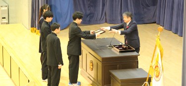 賞状授与式 2026.2.27本校体育館にて、賞状授与式が行われました。優等賞、皆勤賞、外部賞等、同窓会長賞の4種の賞が表彰されました。 |