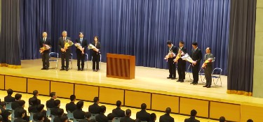 賞状伝達式 2026.3.12本校体育館にて、賞状伝達式が行われました。メカクラブ、空手道部、ラグビー部、ものづくりコンテスト電気工事部門、レーシング部の各部活動が表彰されました。 |